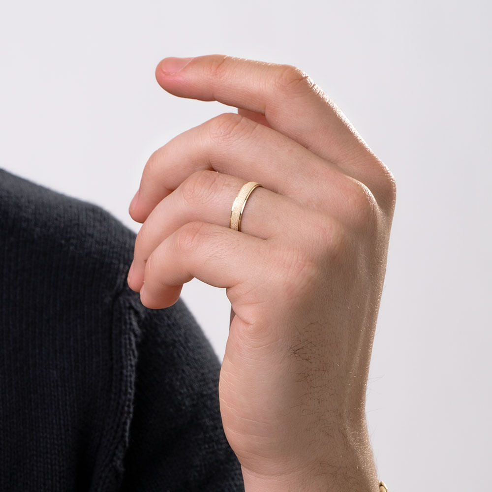 Aliança Gratia de 4,0 mm Masculina em Ouro Amarelo 18K com Textura Granitada 13 |